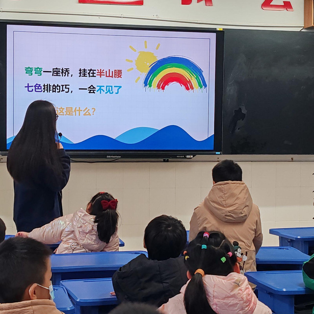 活动现场,志愿者以互动问答的方式快速引入教学主题,为孩子们讲解了彩虹的形成过程,同时引导孩子们观察身边的“彩虹色”,培养孩子们对周围事物、现象初步感知的能力。此外,志愿者向孩子们展示了“牛奶珊瑚”的科学小实验,激发孩子们主动参与科学探索的兴趣,体会到科学的神奇之处。活动尾声,志愿者和小朋友们一起制作简易的“彩虹条”,提高孩子们的课堂印象。此次活动不仅激发了孩子们对科学探索的兴趣,还在帮助孩子们感受彩虹美的过程中培养了他们热爱大自然的情感。