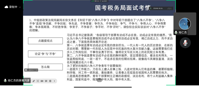 此次分享会为线上会议、线下集中同时开展。会上,罗昌坤同学重点分析了国家公务员考试中常识题、言语理解题、判断推理题、数量关系题、资料分析题等题型的解题思路,毫无保留地分享了自己的笔试备考技巧、面试备考经验;肖仁杰同学则从自己对公务员考试存在的各种疑问入手,详细讲解了国家公务员考试与福建省公务员考试的区别、复习方法、笔面试技巧等,并通过现场答疑的方式,与在场学弟学妹进行互动交流,实时解决他们对公务员考试存在的困惑。吴迪同学为同学们讲述了考上公务员之后,作为一名国家公务员的工作生活中的日常情况;三位主讲嘉宾耐心听取同学们的疑问并进行答疑解惑,不断为在场的同学们加油鼓劲,坚定其备考决心和信心,鼓励他们以积极饱满的状态投入到备考复习中。