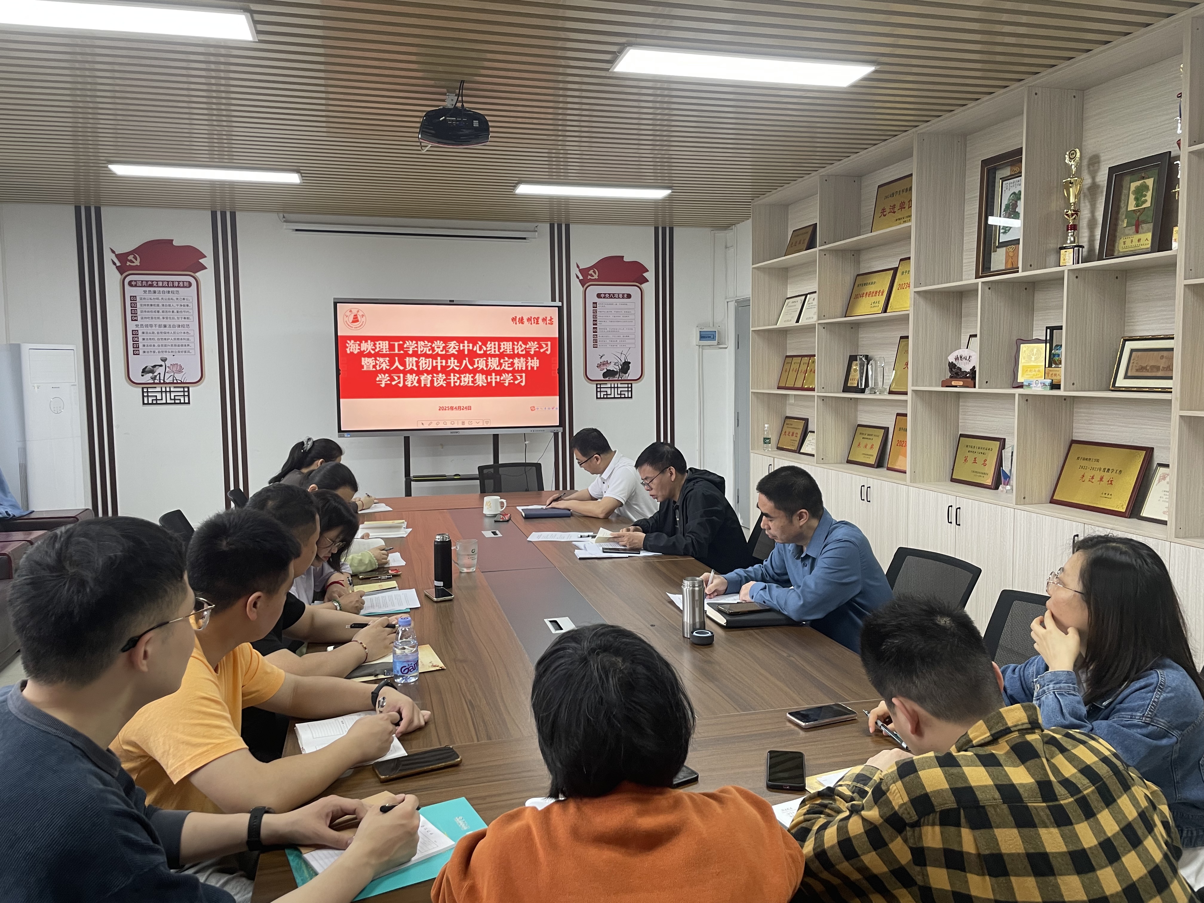 4月24日上午,海峡理工学院在致用楼410召开党委理论学习中心组学习会暨深入贯彻中央八项规定精神学习教育读书班集中学习,全院教职工参加,林光初书记主持。