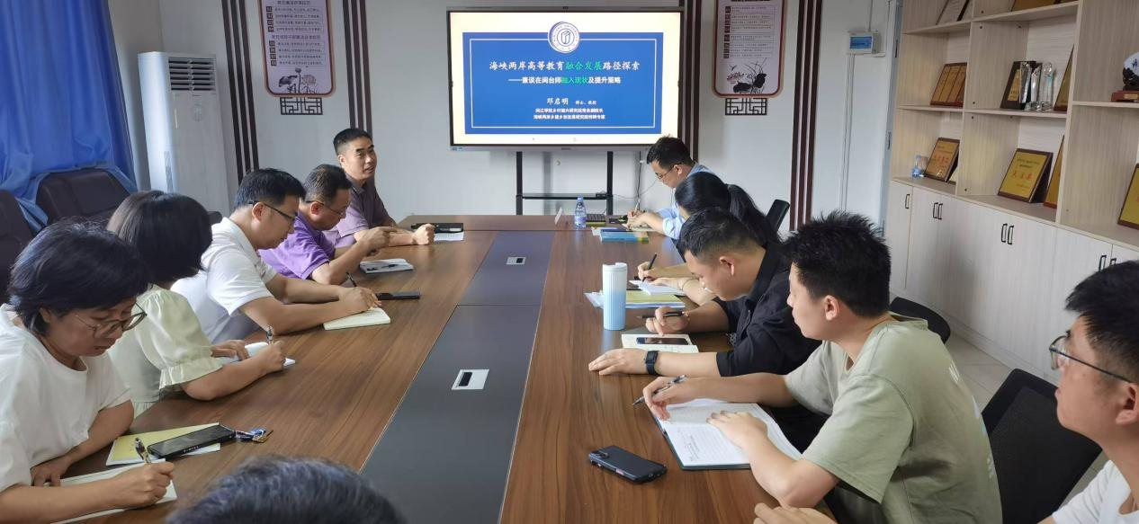 2025年6月11日下午,闽江学院乡村振兴研究院常务副院长、海峡两岸乡建乡创发展研究院特聘专家邓启明教授应邀来到yl6809永利官网,在致用楼411会议室作题为《海峡两岸高等教育融合发展路径探索——兼谈在闽台师融入现状及提升策略》的专题讲座。讲座由海峡理工学院副院长张锐戈教授主持,学院全体教职工现场聆听。