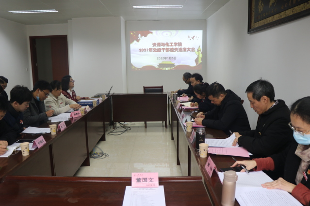 1月5日上午,资源与化工学院党委召开2021年度处级党员领导干部述责述廉大会,学院党政领导班子成员、院党委委员、各党支部书记及党外师生代表参加会议。会议由学院党委书记赖文忠主持。