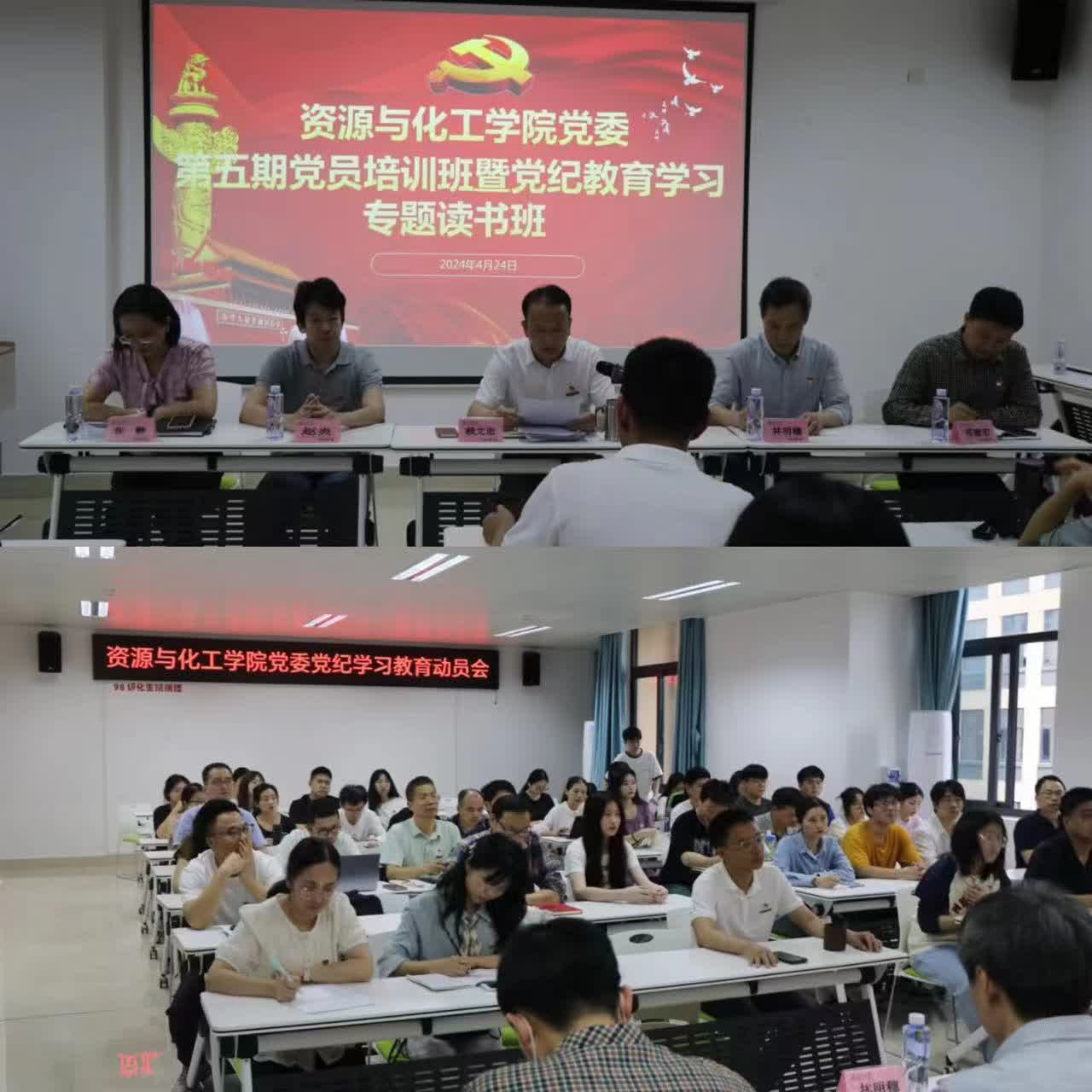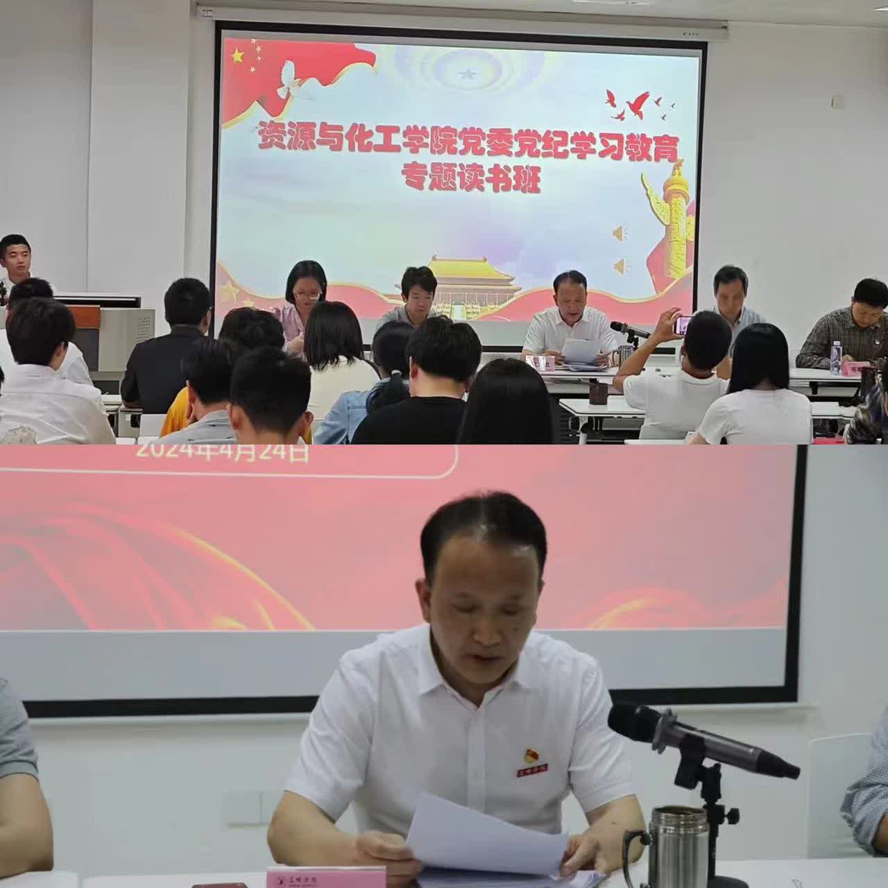 为深入贯彻落实习近平总书记关于党纪学习教育的重要讲话和重要指示精神,深入学习贯彻修订后的《中国共产党纪律处分条例》(以下简称《条例》),4月24日,资源与化工学院举办党纪学习教育专题培训班暨院领导班子读书班开班式,院党委负责人就开展党纪学习教育作动员讲话,学院全体师生党员参加。会议采取线上线下相结合的方式举行,在外实习的学生党员及挂职锻炼的党员干部通过线上参加。