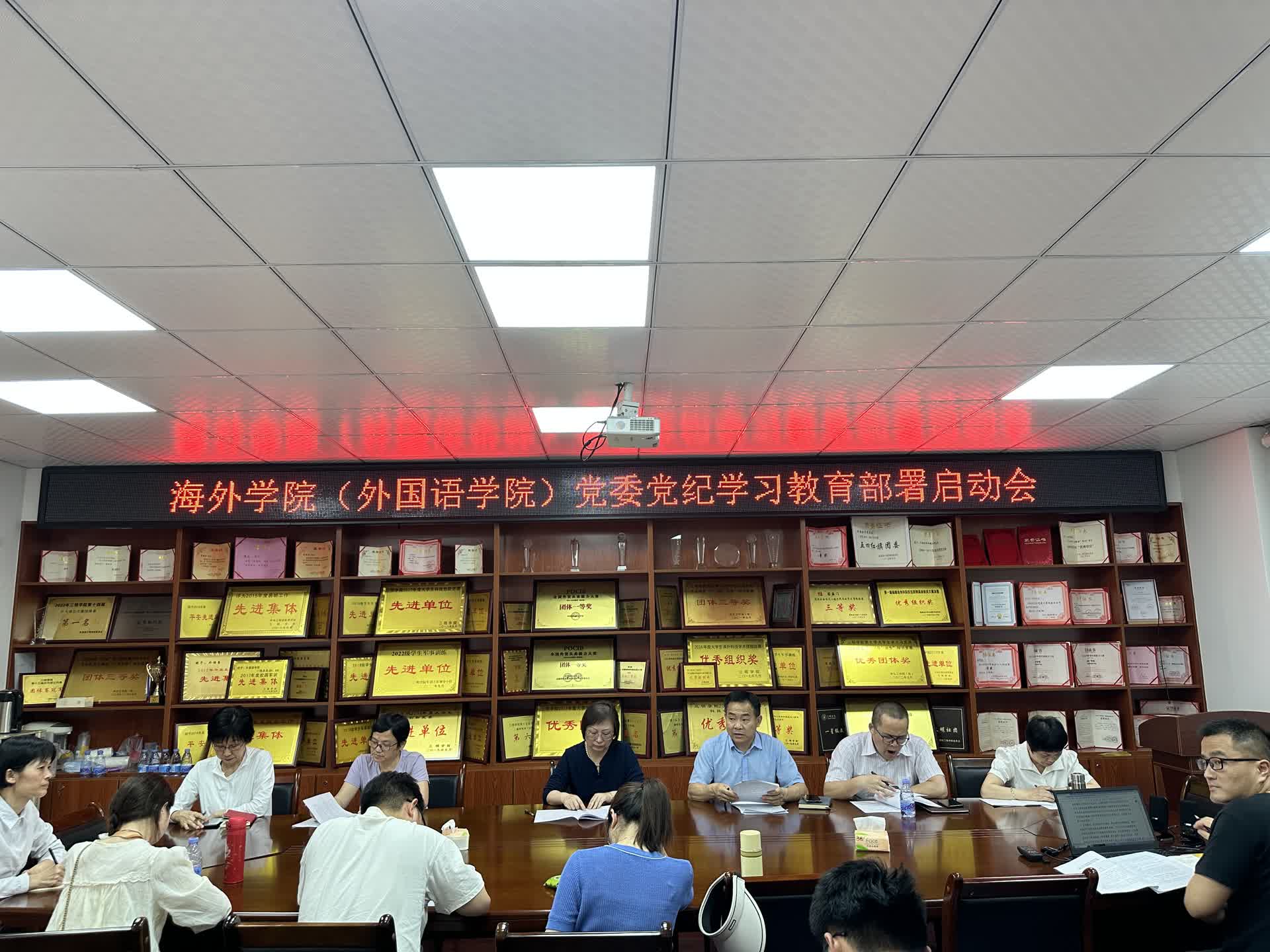 4月16日,海外学院(外国语学院)召开党委会(扩大)会议暨党纪学习教育部署启动会,传达学习习近平总书记关于开展党纪学习教育的重要讲话和重要指示精神、中央党的建设工作领导小组会议精神、省委常委会会议暨党的建设工作领导小组会议精神以及校党委会(扩大)会议暨党的建设工作领导小组会议精神。学院对照《关于在全校党员中开展党纪学习教育的工作方案》的具体要求,研究部署学院党纪学习教育工作,学院领导班子、党委委员、党委组织员、各科室(系)负责人、师生党支部书记参加。