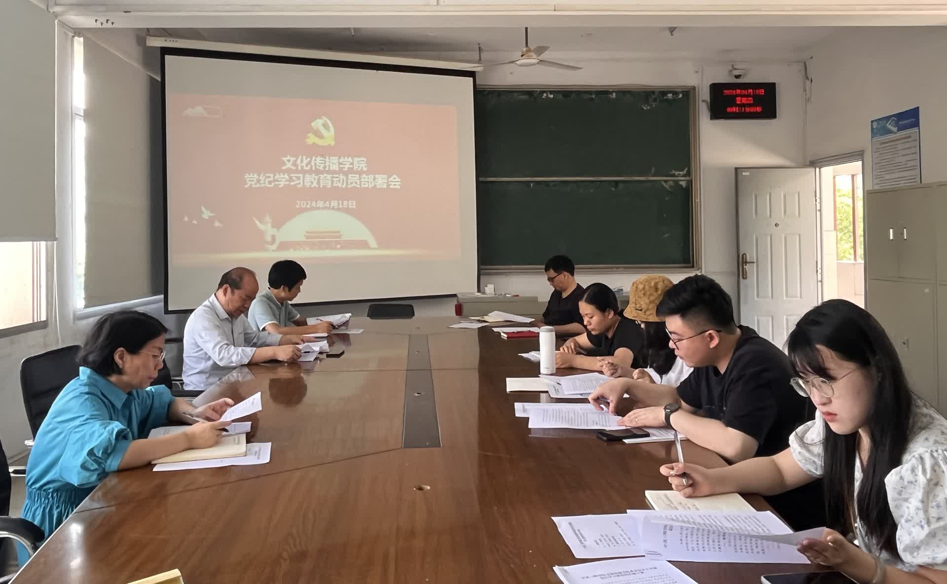 会议组织学习了习近平总书记关于开展党纪学习教育的重要讲话和重要指示精神,传达了校党委会(扩大)会议暨党的建设工作领导小组会议精神,解读了《yl6809永利官网党政办公室印发〈关于在全校党员中开展党纪学习教育的工作方案〉的通知》,研究了《文化传播学院关于开展党纪学习教育的实施方案(讨论稿)》。