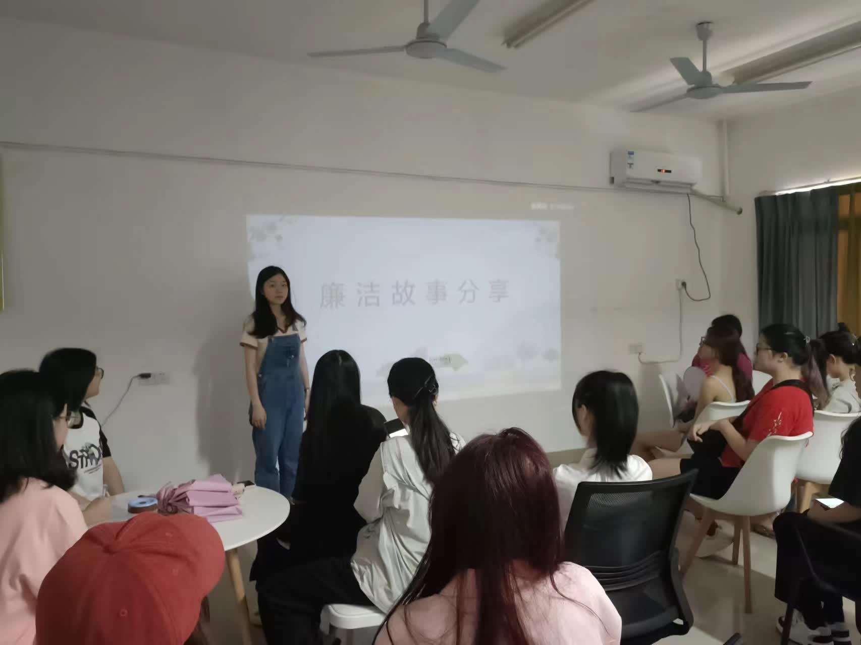 活动开始之际,由潘羽馨同学围绕廉洁文化主题通过PPT分享、视频学习和阅读资料等方式进行相关知识学习,生动讲解了廉洁文化的理念以及树立正确廉洁价值观的必要性。学习结束后,同学们进行分享讨论。在交流中让同学们对廉洁文化有更进一步的了解和认识,营造了纯洁高尚的思想道德环境。