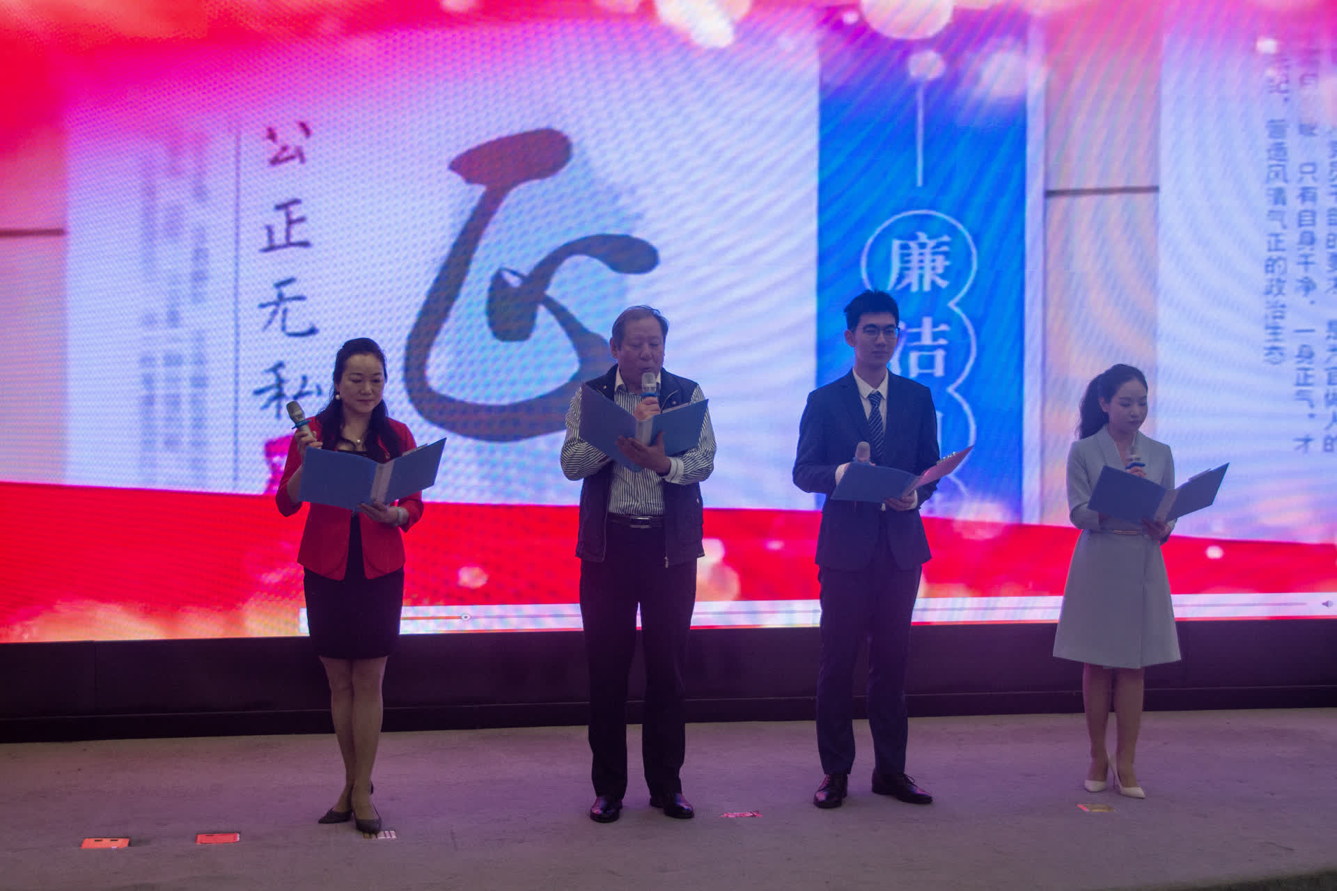 双方单位党员代表还诵读了《以你为镜》《爱廉说》作品,将蕴含廉洁文化的精神和文字用朗诵的形式予以呈现,在学习文化经典中悟思想、受启发、获教育。立足融媒体中心播音主持人的业务特长和文化传播学院播音与主持艺术专业特色,分四组党员代表对廉洁影视作品《人民的名义》《黑冰》片段进行配音,令在场党员代表再一次感悟到“其身正,不令而行”的正直品格。