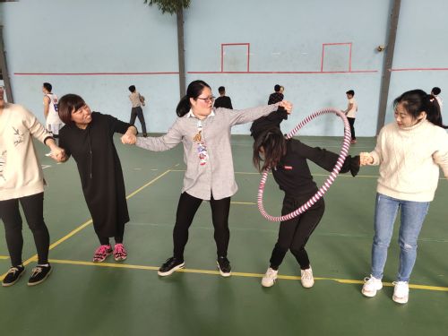 女老师们分三个队开展比拼,先后进行了你画我猜、牵手穿越呼啦圈以及个人呼啦圈三个项目。大家积极参与,团结协作,加油呐喊声此起彼伏,充满了欢声笑语。