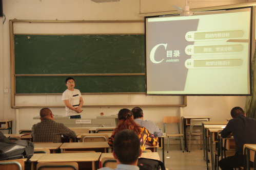 八位参赛教师自选课程主题,充分挖掘教材内容,运用多媒体辅助教学,在规定时间内从教材、教法、学法、教学过程、授课技巧五大方面进行说课演讲,就自己独特的教法、学法、教学过程等环节作了充分展示。
