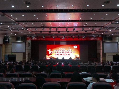 4月29日晚,经济与管理学院、机电工程学院、资源与化工学院、教育与音乐学院、艺术与设计学院、海外学院分党校第七十七期入党积极分子培训班在北区行政附楼学术报告厅举行结业式。