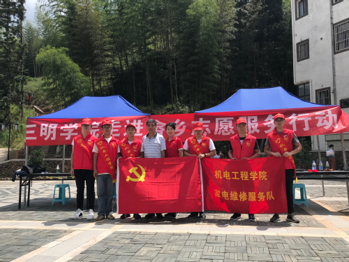 9月8日,为促进民族团结,促进大学生学以致用,真正服务社会,增长才干。机电工程学院团委书记与电子工程系教师冯节金组织刘志、李祎、李潇涵等六名学生、党员志愿者组成家电维修服务志愿服务队,前往永安清水畲族乡镇开展志愿服务活动。上午在清水乡政府工作人员的引导下,前往镇尾广场提前铺设的家电维修场地,开展“家电维修进社区”活动,为乡民免费维修各类小家电。由于乡政府的提前告知,四面八方村子乡民带着自家损坏的家电聚集在维修场地。一个上午,志愿者们就维修了小家电30余件,乡民们对此非常满意纷纷竖起大拇指,连声称赞。由于现场备受村民好评,我院与清水政府决定形成长期共建合作关系,每月家电维修志愿服务队定期前往清水镇,为乡民免费维修各类小家电。