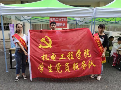 又是一年开学季,我院迎来了新的一批莘莘学子,党建工作室为了充分发挥党员先锋模范作用,切实践行全心全意为人民服务的宗旨,将“三个代表”重要思想落实到学生党员的实际工作中,我院把迎新工作作为学生党支部“创先争优”的实践载体,全新全意为同学服务,展现我院党员精神风貌和优良品行。大学生党员作为党的新鲜血液除了在生活方面要起到党员的作用,更要在其他方面也能有带头作用,当新生在某些方面遇到困难时党员服务队就起到了它的作用。党员们耐心地给新生讲解报名流程、办理贷款手续,天气炎热,党员亲自代领新生前往南北区办理相关手续,努力帮助同学们解决问题。