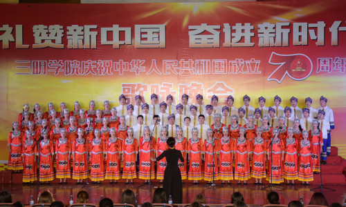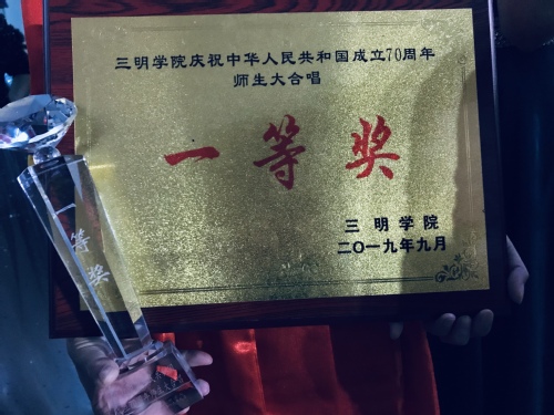 9月26日晚7:00,以“礼赞新中国,奋进新时代”为主题的庆祝中华人民共和国成立70周年歌咏晚会在学术报告厅拉开了帷幕。 经过激烈角逐,机电工程学院师生合唱团以一首《三月三,九月九》荣获第一名。