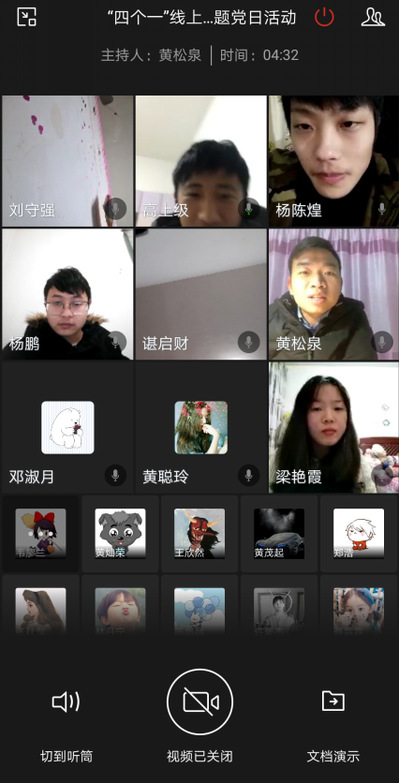 为进一步发挥基层党组织阻击疫情战斗堡垒和党员先锋模范作用,2020年2月17日,机电工程学院学生第二支部在黄松泉书记带领下利用视频会议系统开展“四个一”线上主题党日活动。