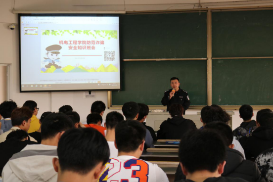 3月24日下午,机电工程学院在博学楼223召开防诈骗知识讲座。