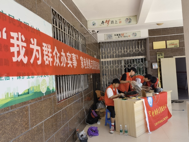 此次活动受到胡坊镇党委、胡坊村党支部的大力支持。活动开展前期对活动进行宣传,并帮忙收集需要维修的家电类目。14日上午,服务队在村委会开始摆摊设点,村民陆陆续续将需要维修的家电拿到维修点维修。队员们热情地接待前来维修家电的居民,耐心地为其介绍本次活动的具体细节,询问家电存在哪些故障并做好登记,并告知归还家电的日期。对于行动不便的老人以及故障家电过大不便运送的村民则上门维修。