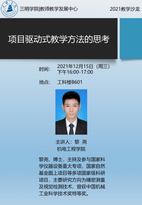 12月15日下午,机电工程学院教师艾子健和黎尧开展以“任务驱动法在《液压传动》课程中的应用”和“项目驱动式教学方法的思考”为主题的教学沙龙活动,旨在增强学生学习动力、强化课堂教学效果,促进师生交流。