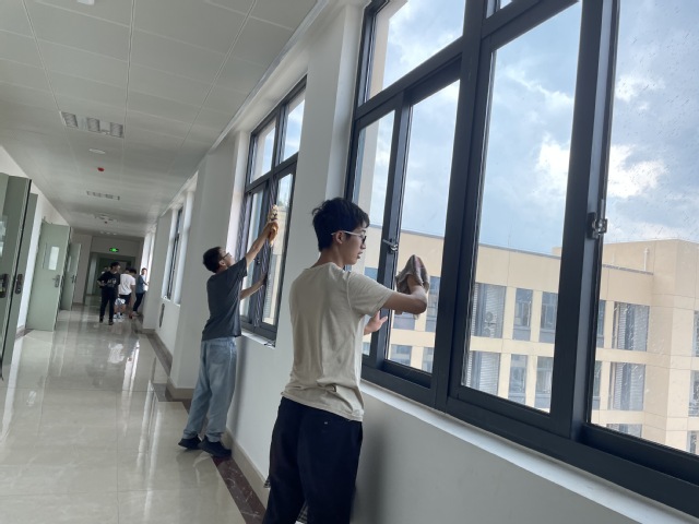 根据劳动区域划分方案同学们各自带好工具本着“一屋不扫何以扫天下”的信念 认真地打扫各个教室同学们拿着抹布努力清除教室、实验室粘在桌椅上的纸张和字迹打扫地上的灰尘大家分工明确发扬不怕脏不怕累不怕苦的精神齐心协力,配合默契地洒扫除尘。虽辛苦但看着窗明几净焕然一新的教室,成就感带来的快乐溢于言表。