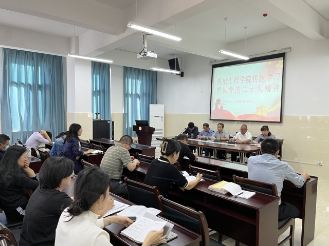 10月26日下午,机电工程学院在工科楼C603召开教职工大会,贯彻落实学习党的二十大精神。
