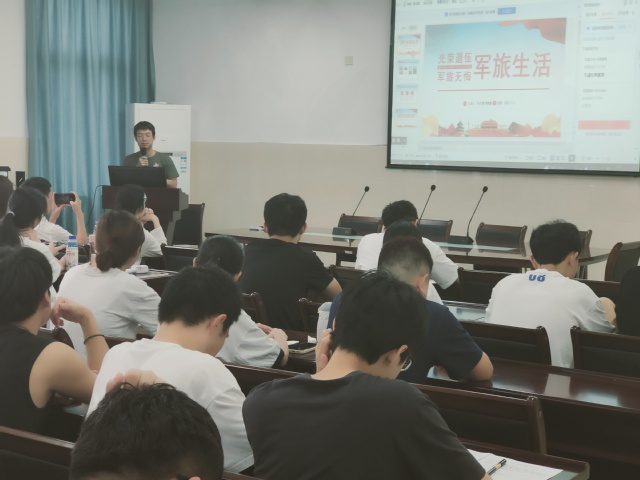 “人的一生如果有机会一定要去军营锻炼一次,在那里,你才能展现你的爱国情怀;在那里,你才知道什么是辛苦;在那里,你才知道为什么有国才有家……”退伍学生党员分享了自己在军营的生活,把最后的收获归为几句话送给大家,希望同学们勇于吃苦,敢于担当,珍爱和平,对党忠诚。