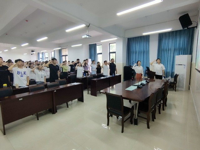 面对庄严的党旗,机械学生支部书记作为领誓人,带领各支部党员一起高举右手,再次庄严宣誓。“我志愿加入中国共产党……随时准备为党和人民牺牲一切,永不叛党。”铿锵有力的誓词,强烈震撼着在场的每一位党员。誓词中的一字一句,庄严神圣,唤起了党员同志们加入中国共产党时的初心,并时刻牢记党员使命,始终保持对党的的无限忠诚。