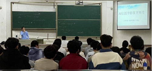 讲座中,宁医生从AI技术在医学方面的应用、医学影像AI技术流程和应用实例展开了阐述,强调了AI在医学设备、工业设备等各个领域的重要性,让学生们进一步体会到我们就是未来人工智能的创造者,引导学生们在实践中思考这些技术对人类生活、尤其是健康医疗带来的帮助及影响。