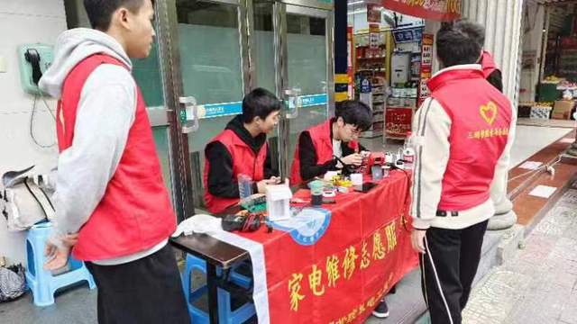 12月3日,机电工程学院家电维修队前往三元区高岩社区(农行门口)参加第38个12.5国际志愿日社区志愿服务活动
