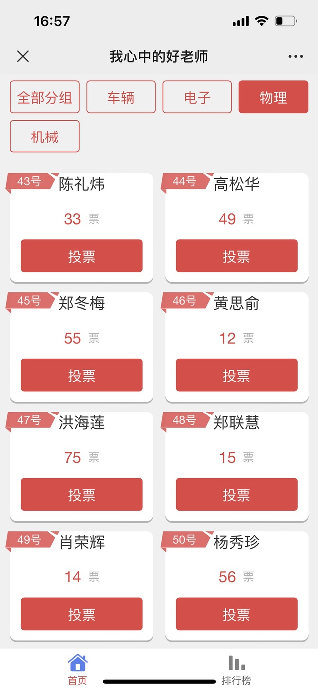 为深入落实贯彻新时代教师队伍建设总要求,进一步挖掘弘扬师德师风典范,进一步加强学院师德师风建设,激发全员育人的热情,营造尊师重教的良好风尚、立德树人的良好氛围,建设一支德艺双馨的高素质教师队伍。机电工程学院开展“ 我心中的好老师”投票活动,学生积极参与,为自己喜爱的老师加油投票。