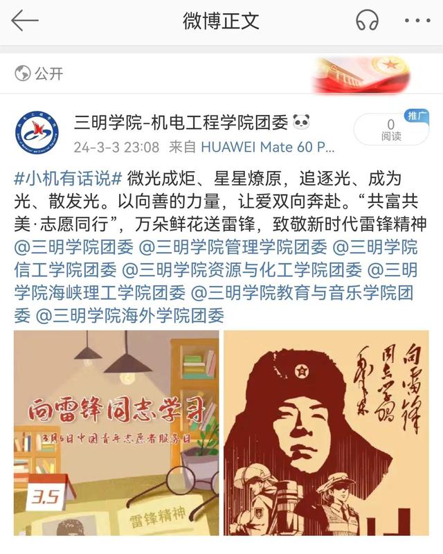 忆雷锋、述雷锋、学雷锋,机电工程学院将持续完善管理机制,加强志愿服务科学化建设,发挥青年志愿服务先进集体、优秀志愿服务项目、优秀青年志愿者的引领示范作用,激励广大机电学子争做雷锋精神传播者、践行者、创新者,以锐意进取的创新精神、积极向上的人生态度和百折不挠的奋进意志,把青春汗水播撒在中华民族伟大复兴的新征程上!