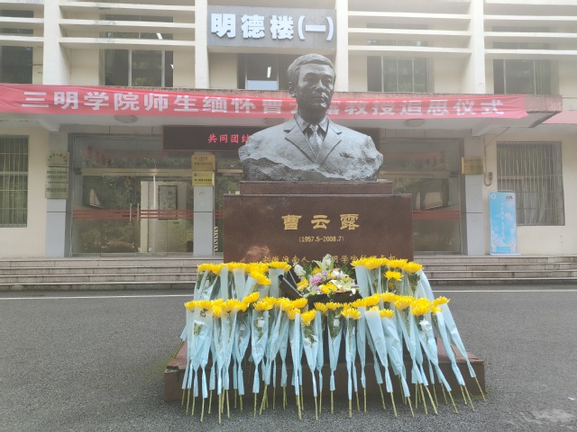 全体师生在曹云露教授的雕像前肃立,默哀致敬,用最深切的哀思和崇高的敬意,传达对曹云露教授的深切缅怀。整个仪式庄重而肃穆,师生们的脸上写满了哀思和怀念。师生们依次向雕像献花,用鲜花表达了对教授的深切怀念和无尽哀思,也表达了对未来的坚定信念和美好期许。