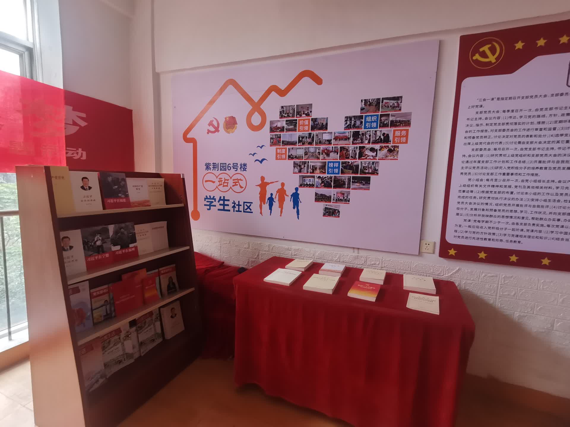 据悉,紫荆园6号学生社区三楼的开放党建室添置了《中国共产党纪律处分条例》、《习近平关于严明党的纪律和规矩论述摘编》、《习近平关于全面从严治党论述摘编》等经典书籍,并建立了共享书籍二维码,方便楼栋社区同学阅读。