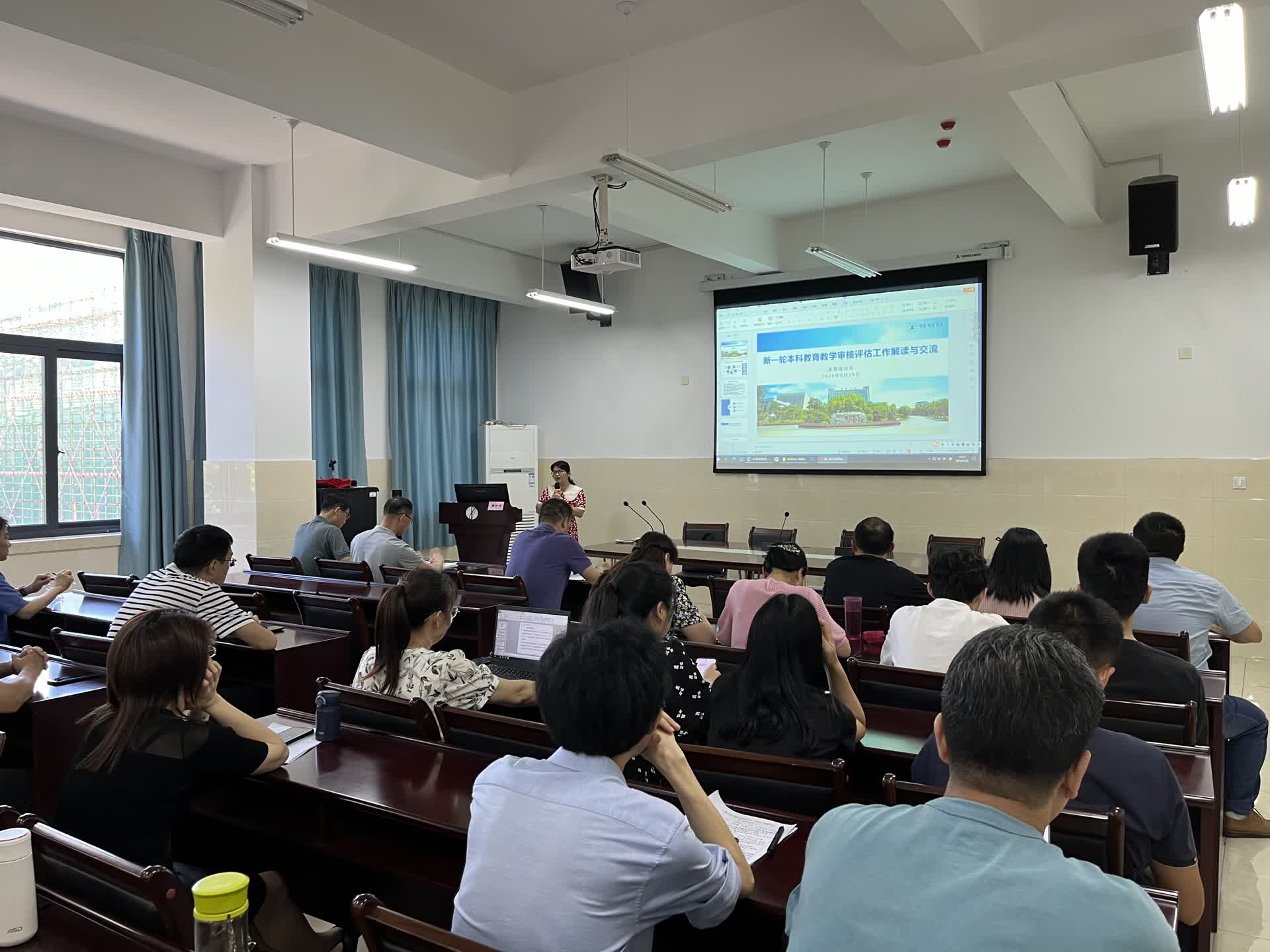 会议邀请发展规划处黄妙娟科长作题为《新一轮本科教育教学审核评估工作解读与交流》专题讲座。她围绕新一轮审核评估“新在何处”,评建工作主要做法和参评体会感受三个方面展开了具体讲解。全体教师纷纷表示:要以强烈的责任感、使命感和紧迫感投入到审核评估工作中,对标对表查找问题和不足,形成问题清单并持续改进,真正做到“以评促建、以评促改、以评促管、以评促强”。
