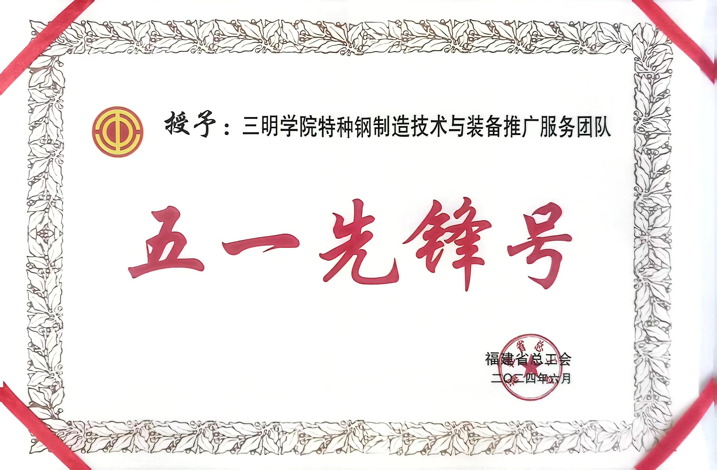 近日,福建省总工会公布了2024年福建省五一先锋号获奖名单,我校yl6809永利官网特种钢制造技术与装备推广服务团队荣获福建省五一先锋号。