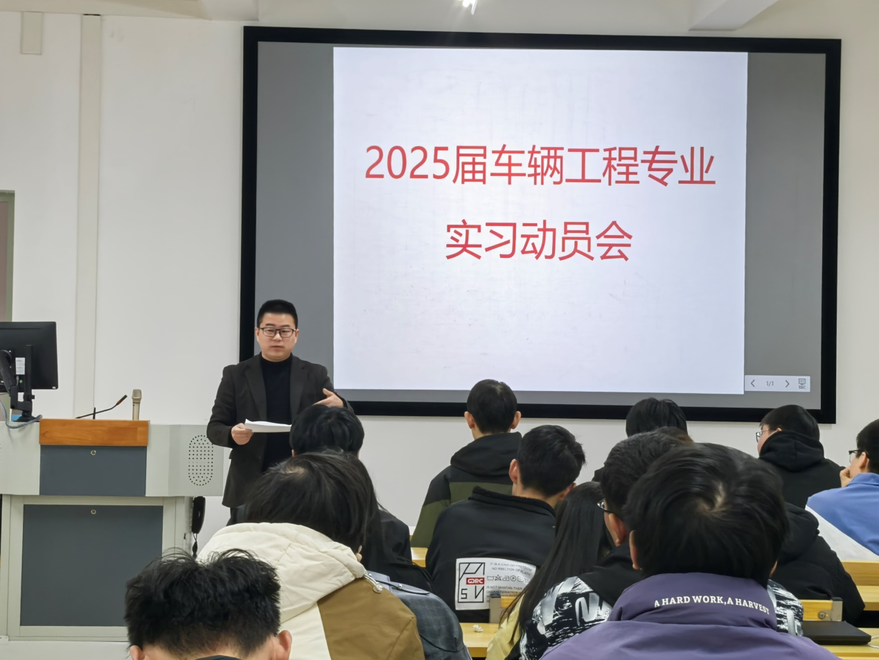 12月17日,为更好地指导2025届毕业生完成毕业实习任务,车辆工程系于工科楼召开了2025届毕业生实习动员大会。大会由系主任陈刚主持,实习指导老师及21车辆工程班全体学生参加。