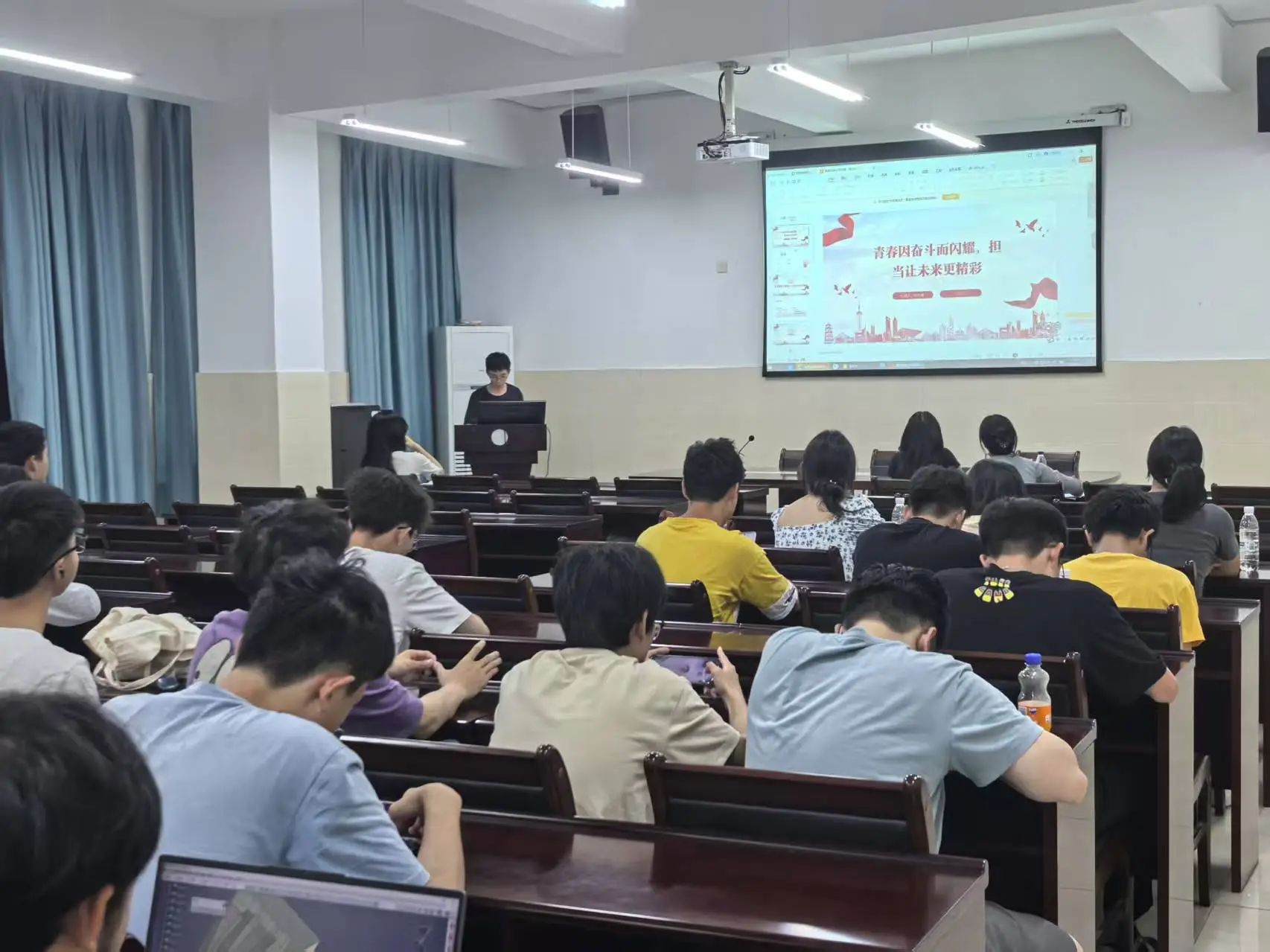 5 月 1 日,一场沉浸式的红色精神之旅在工科楼C603展开。随着《1921》等经典影片的播放,同学们仿若穿越时空,与影片中的革命先辈们并肩前行,见证他们在历史洪流中坚守理想、无畏抗争的英勇事迹。