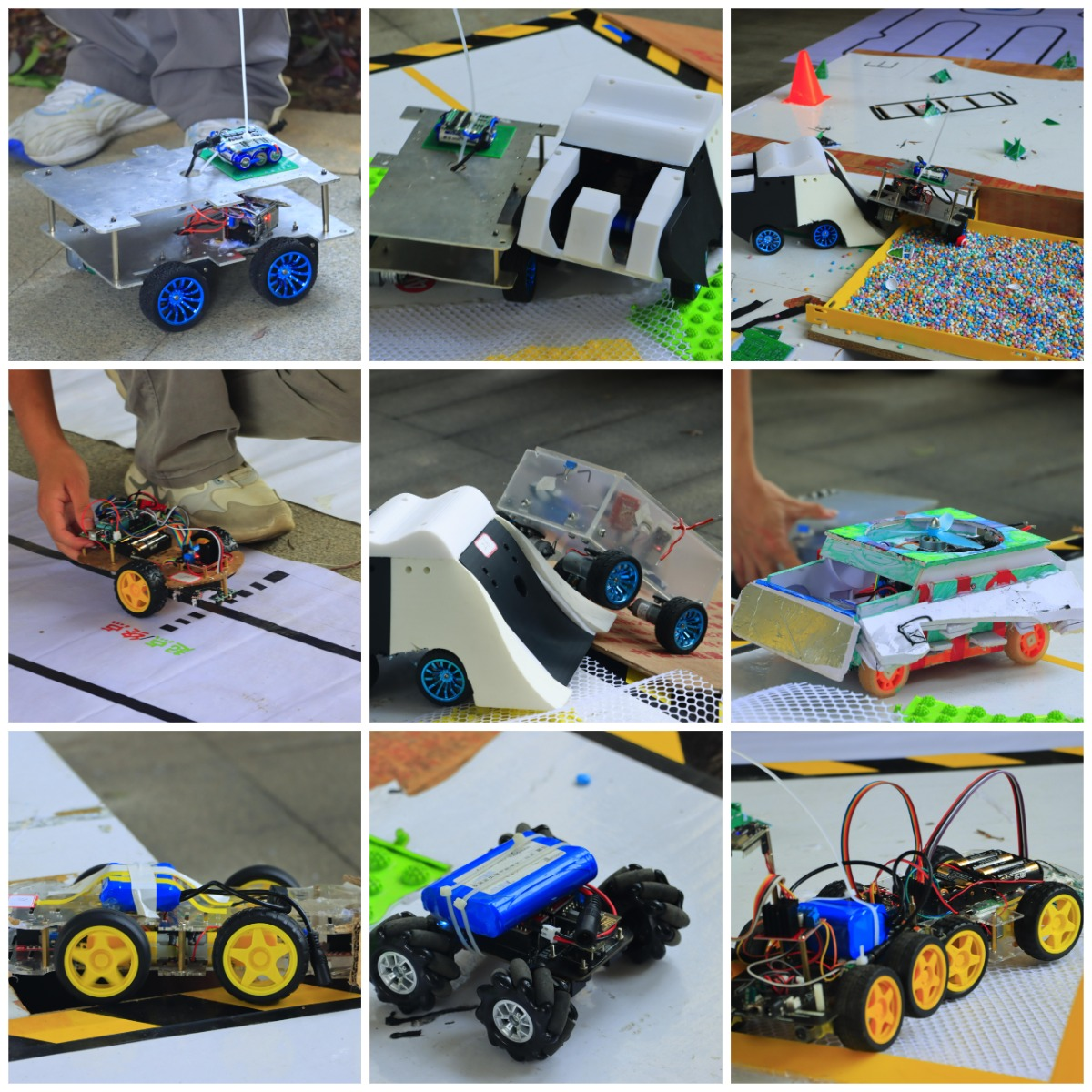 本次大赛共设有寻迹小车(A赛道)和智能小车(B赛道)两个赛道。A赛道以“智能循迹”为核心任务,要求参赛车辆在宽度为50厘米的白色赛道上,沿黑色引导线自主行驶,赛道包含S弯、直角弯、环岛及十字路口等复杂元素。车辆需在规定时间内完成全程,触碰赛道边界或偏离路线即被判定为失败。B赛道则聚焦“智能操控”能力,要求车辆在复杂的道路场景中完成路径规划、目标识别及对抗任务。赛道设置模拟道路环境,包含模拟障碍物、沙地及桥梁等。车辆需通过完成指令或是将对方车辆逼退赛场。经过激烈的角逐,最终“真是小猪队”和“从容应队”分别夺得A赛道和B赛道的冠军。