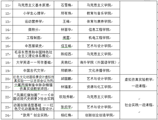 近日,省教育厅公布了2020年省级一流本科课程名单,我校共有24门课程被认定为省级一流本科课程,其中线上一流课程2门、线下一流课程5门、线上线下混合式一流课程12门,虚拟仿真实验教学一流课程2门、社会实践一流课程3门。