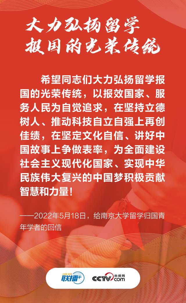 央视网《联播+》特梳理总书记对广大留学人员的谆谆寄语,与您一起学习。