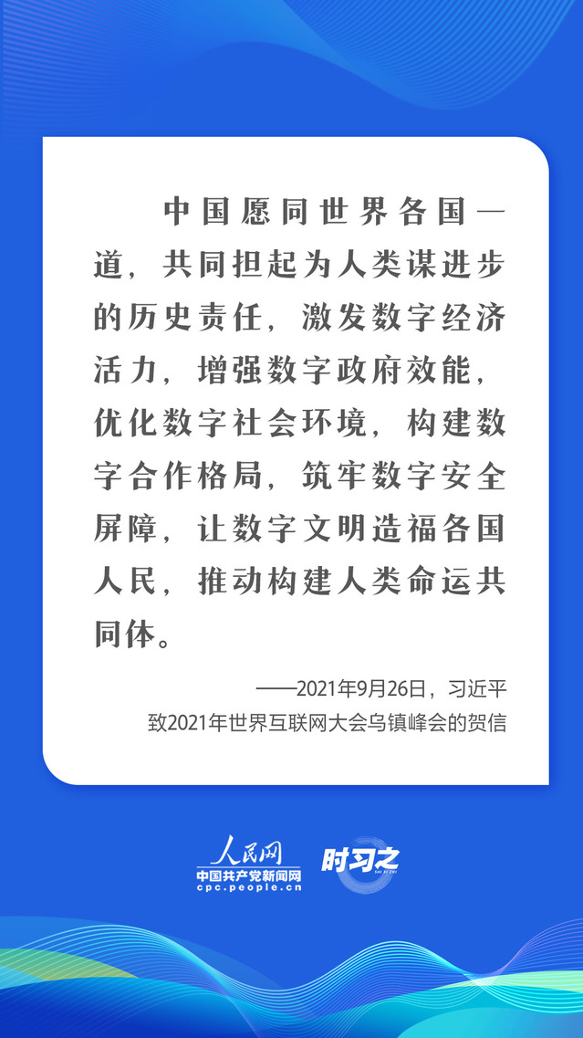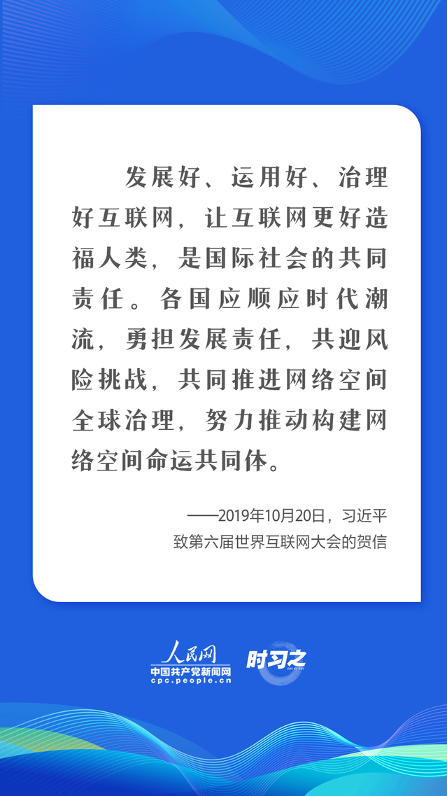 7月12日,国家主席习近平向世界互联网大会国际组织成立致贺信。他强调,网络空间关乎人类命运,网络空间未来应由世界各国共同开创。这些年,习近平数次就互联网发展大势、网络空间治理作出重要论述,并多次在不同场合发出“中国倡议”,为世界互联网发展凝聚合力。