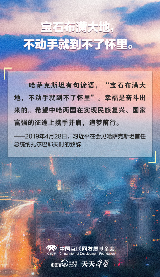 在外交场合中,习近平主席多次引用哈萨克斯坦充满智慧和哲理的谚语,谈合作、叙友谊、谋发展、话未来,进一步拉近了中哈两国人民之间的感情。央视网《天天学习》栏目特撷取其中经典,与您一起学习领会。