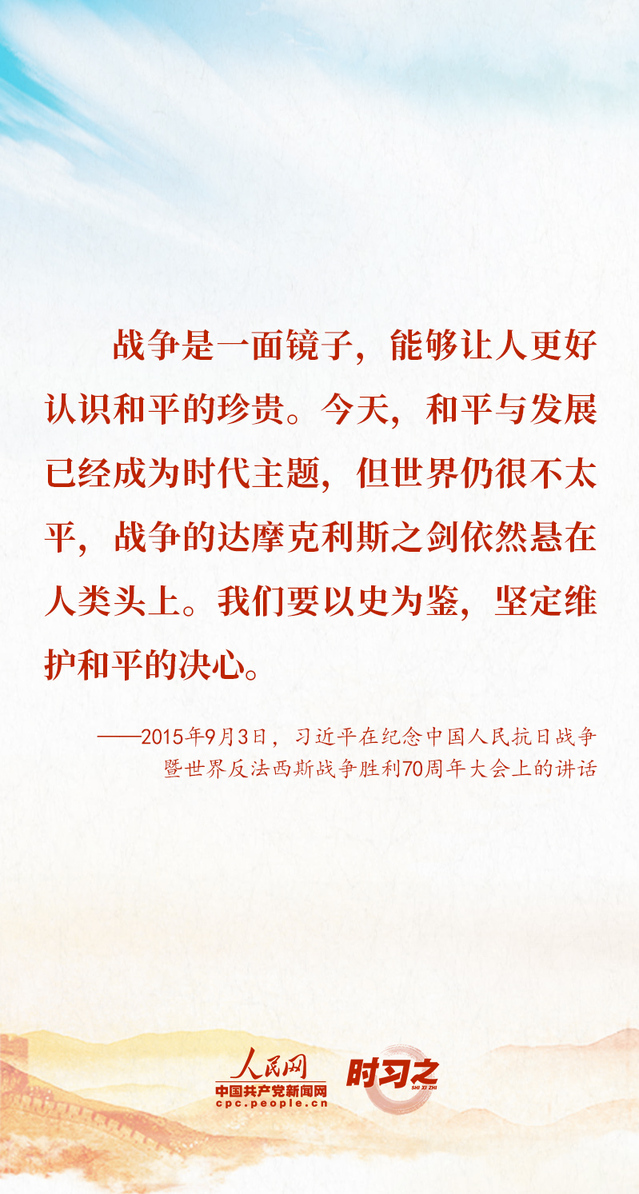 历史是最好的教科书,也是最好的清醒剂。中国人民对战争带来的苦难有着刻骨铭心的记忆,对和平有着孜孜不倦的追求。党的十八大以来,习近平总书记多次提到弘扬抗战精神,要以史为鉴、珍爱和平。九一八事变发生91周年之际,让我们一起学习习近平总书记的相关论述,从历史中汲取前行力量。