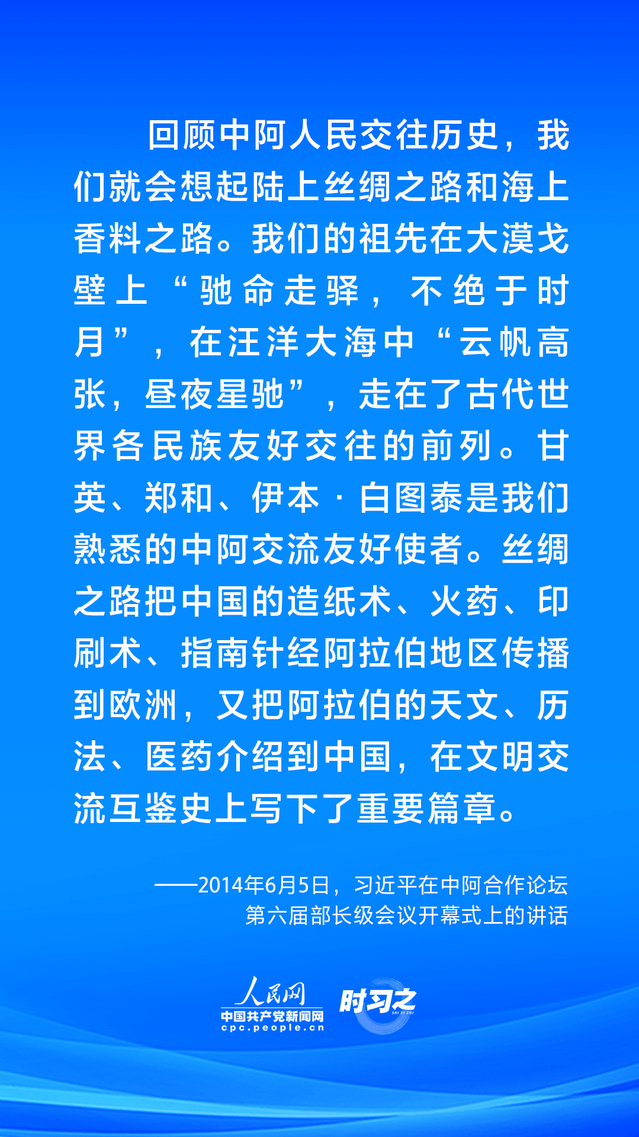 中国与阿拉伯国家友谊源远流长,历久弥坚。和平合作、开放包容、互学互鉴、互利共赢始终是中阿交往的主旋律。习近平主席多次在不同场合谈到中阿友谊,提出携手打造面向新时代的中阿命运共同体,积极推动中阿命运共同体建设不断走深走实,造福双方人民。