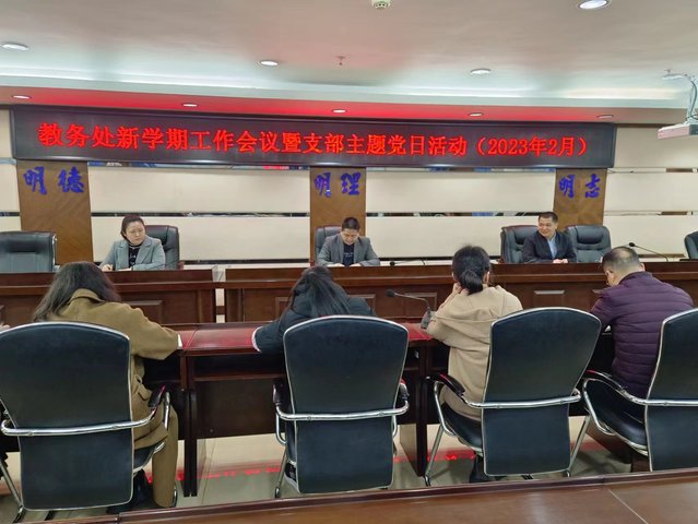 2月11日,教务处在行政楼四楼会议室召开新学期工作会议暨支部主题党日活动,教务处全体成员参会。