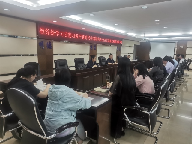 4月18日下午,教务处在行政楼四楼会议室举办学习贯彻习近平新时代中国特色社会主义思想主题教育读书会。部门负责人领学了《习近平新时代中国特色社会主义思想专题摘编》中关于“中国式现代化”的重要内容,结合yl6809永利官网主题教育工作会议精神和“三突三争”重点工作检视会上提出的问题部署下一阶段教务处重点工作。