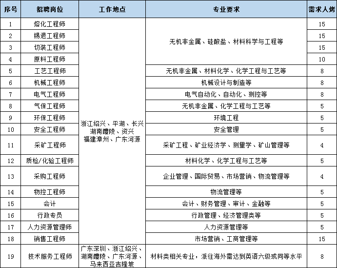 (三)培养目标:校园招聘是旗滨集团2017年启动的战略性人才培养计划。校招生定位于经过3-5年的培养逐步走向专业技术和管理的中基层岗位,5-8年内逐步走向专业技术和管理中高级岗位的战略人才储备计划。