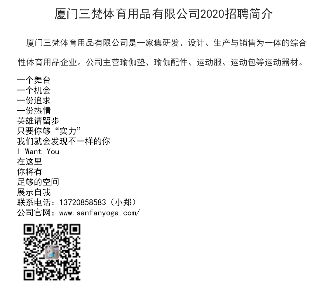 厦门三梵体育用品有限公司2021年校园招聘