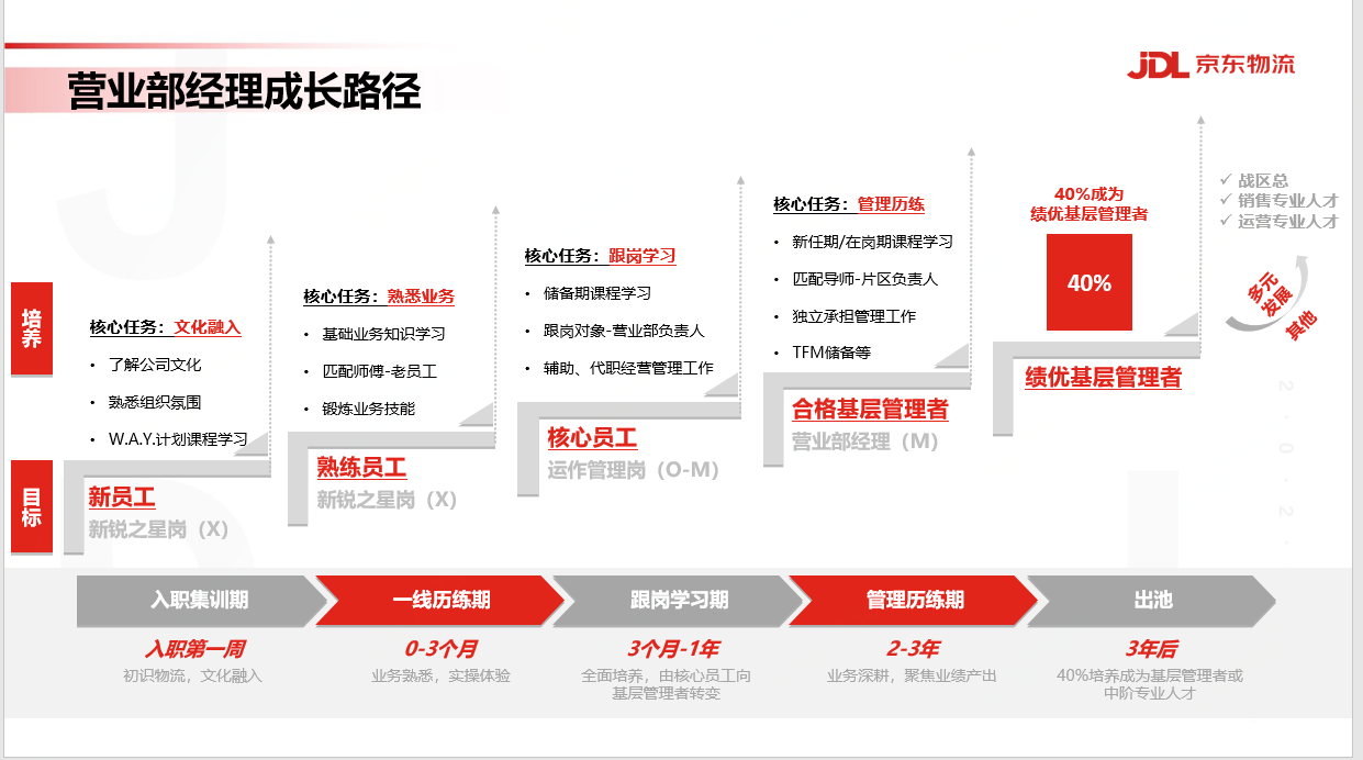 新锐之星项目,致力于培养京东物流基层管理人才。项目旨在3年内,通过以战代练,培养出一批专业的基层管理者,助力区域公司业务的长远发展。