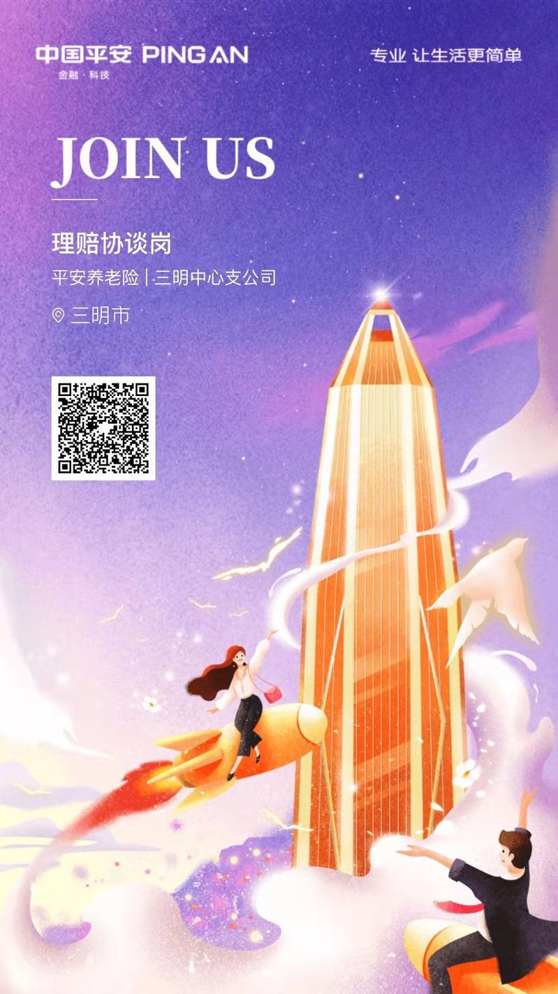 平安养老险三明中心支公司招聘信息