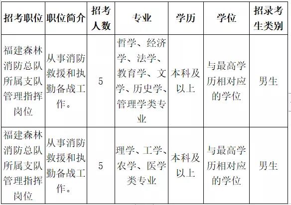 福建省森林消防总队2021年度面向普通高等学校应届毕业生补录干部10名,具体专业为: