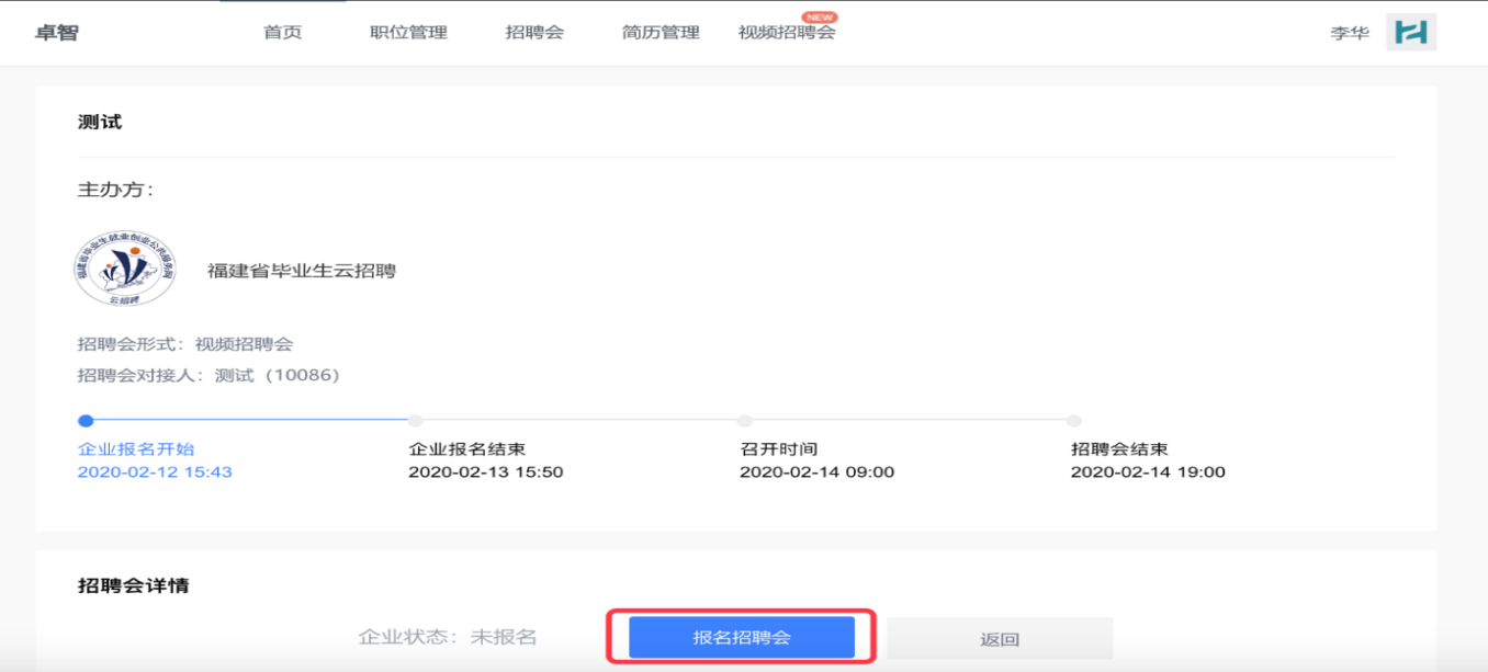 (2)在招聘会详情页面,点击【报名招聘会】,开始报名。