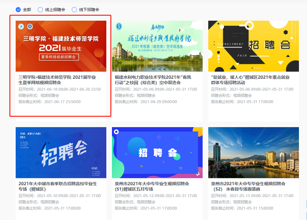 网络平台支持:福建省毕业生就业创业公共服务网“云招聘”平台